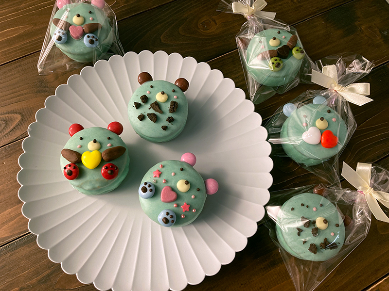 ③チョコペンやカラフルチョコ等で可愛く飾り付ける。