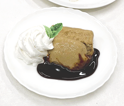 4.デーツヨーグルトが冷やし固まったらラップを外し、お皿に取り出す。