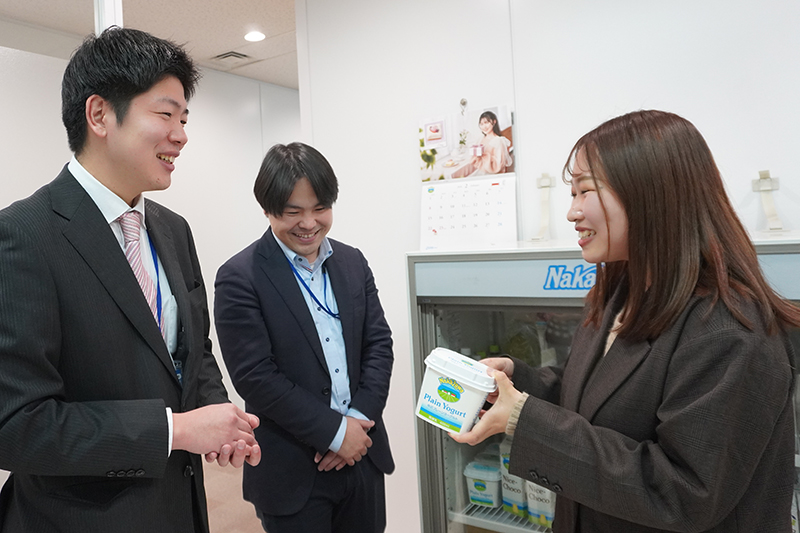 自社製品が使われた商品がお店に並ぶ瞬間が最大の喜びです。お客様と共につくり上げた商品だと実感できた時や、チームで実際に試食し喜びを分かち合えるのも、中沢乳業らしさだと思っています。